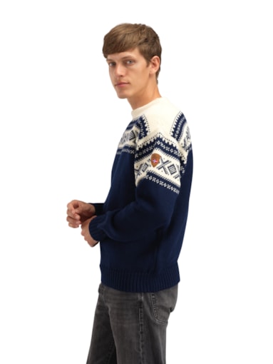 • Den originale skigenseren! Denne ullgenseren var Dale of Norways første offisielle OL-genser, laget til Vinter-OL i Cortina d’Ampezzo i 1956. Designet av Bitten Eriksen var den starten på en ny æra innen norsk strikk.