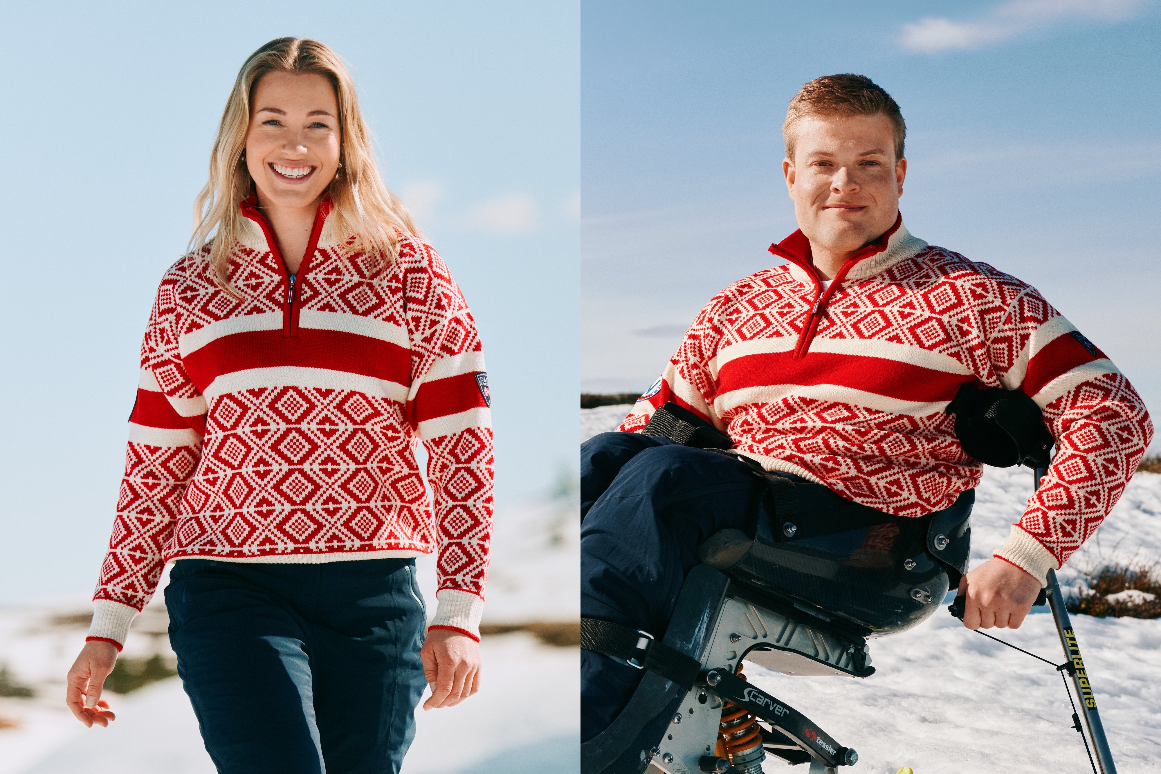 På bildet: alpinistene Jan Einar Thorsen og Astrid Lødemel i OL-genseren.