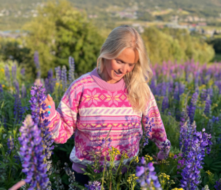Denne genseren i begrenset opplag er inspirert av de magiske solnedgangene i Lofoten, med en fargepalett som blander rosa, lilla og myke gultoner. Designet henter også referanser fra sterke mønstre i vintage skandinaviske gensere fra 1980- og 90-tallet,- tidløst, men samtidig lekent.