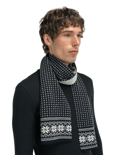 • Et sporty, varmt og mykt skjerf med tradisjonelt norsk mønsterdesign basert på den ikoniske åttebladrosen. Skjerfet er strikket i 100% kløfri merinoull. Designet er inspirert av vår Garmisch VM-genser fra 1978.