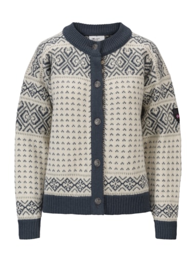 Hannah er en elegant cardigan som kombinerer tradisjonsrik arv med et moderne uttrykk. Med ribbestrikket knappestolpe, norskproduserte tinnknapper og en avslappet passform, er Hannah sterkt inspirert av en cardigan i Dale-arkivet som ble introdusert i 1978. Nå er den tilbake som et nikk til tidløs mote og den til rike historien til Dale of Norway.