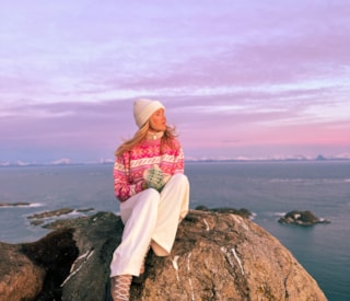 Interessen for strikkegensere oppsto da Ingrid flyttet til Lofoten i 2017. “Jeg merket fort at både stilen og behovet for ull og strikk her i nord var større enn i Oslo. I Lofoten begynte jeg å kle meg mer praktisk, og etterhvert som tiden gikk begynte jeg å gå med strikkegensere daglig”, forteller den fargeglade jenta.