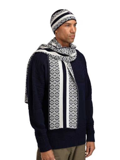 • Kvitegga skjerf matcher vår offisielle OL-genser til Milano/Cortina 2026 og er strikket i myk merinoull. Mønsteret er inspirert av vår aller første offisielle OL-genser, den ikoniske genseren fra Vinter-OL i 1956 i Cortina d’Ampezzo. På denne måten gjenspeiler skjerfet vår historie og langvarige lidenskap for vintersport, samtidig som det fanger essensen av norsk håndverk.