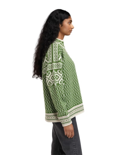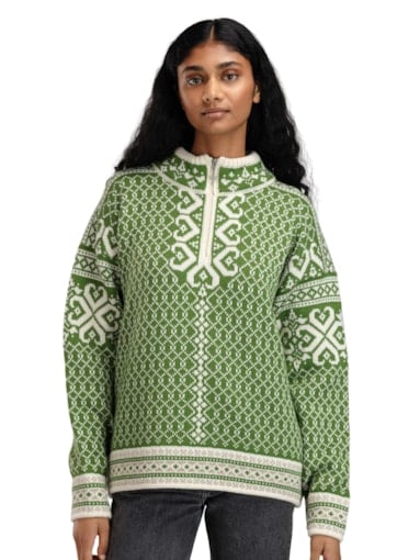 En tykk, mønsterdrevet ullgenser med avslappet passform. Genseren har halvhøy hals med glidelås og er strikket i 100% ull med lang holdbarhet. Leknes kan brukes både som turgenser og til hverdags. Med tradisjonelt norsk mønster og oppdatert passform er dette en ullgenser som er både nostalgisk og tidløs.