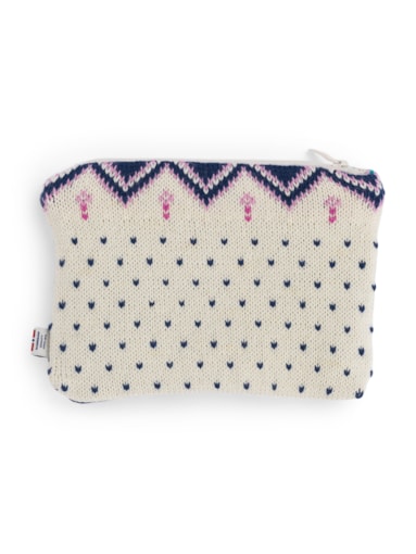 En fin og praktisk pouch strikket i ull, laget av restmaterialer fra vår fabrikk på Dale. En liten veske som rommer de mest essensielle eiendelene, og har et praktisk fôr og glidelås på toppen. Bruk den til å organisere små eiendeler som nøkler, kort, mobiltelefon, sminke og lignende. Smart på reise og på farten, og en super gave til venner og familie.