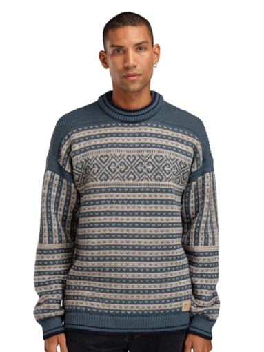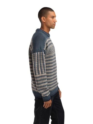 Ramberg tilfører en unik urban flair til et tidløst design. Genseren er inspirert av den historiske Fana-genseren. Stripene fra det klassiske designet er supplert med avrundede åttebladroser rundt brystet og et tradisjonelt lusemønster. En avslappet passform, ribbestrikkede skuldre som fremhever de senkede skuldrene, og slående kontraststriper ved hals, ermer og nedre kant, tilfører genseren et friskt og dynamisk preg. I genseren blandes flere fargenyanser i en og samme tråd, noe som gir Ramberg et livlig, urbant preg.