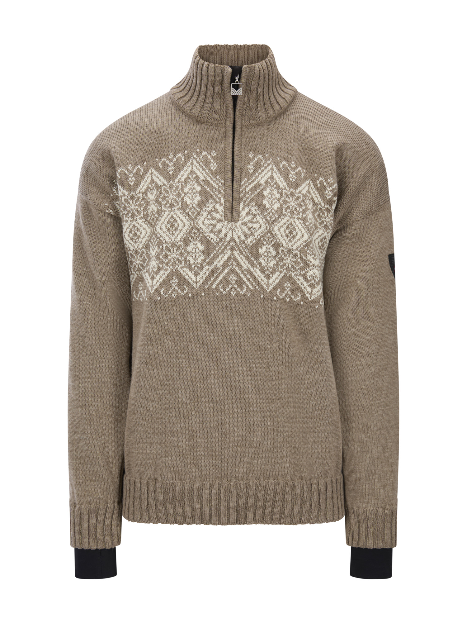 Du kan trygt dra ut på eventyr med Roset Windproof genser. Høy hals med glidelåslukning, vindtett fôr, to-veis glidelåser i siden for ventilasjon og skjulte lommer foran, gjør Roset til et allsidig valg for skiftende værforhold. En avslappet passform og mansjetter med tommelhull gjør ullgenseren perfekt for lagvis påkledning. Roset er strikket i lett norsk ull med svært gode isolasjonsegenskaper. Sammen gir dette et tidløst plagg med eksepsjonell funksjonalitet, ideell for sport og friluftsliv, sommer som vinter. Designet til Roset er inspirert av vår ikoniske VM-genser fra St. Moritz i 2003.