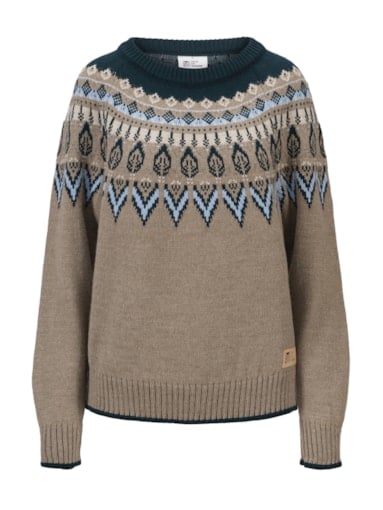• En dekorativ, mønsterdrevet ullgenser med avslappet passform. Genseren er designet til å se ut som en rundstrikket genser, men har en klassisk konstruksjon med raglanermer. Sula er en tykk og komfortabel genser strikket i 100% ull med lang holdbarhet.