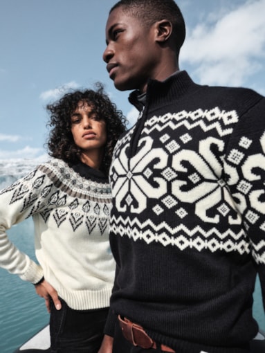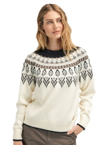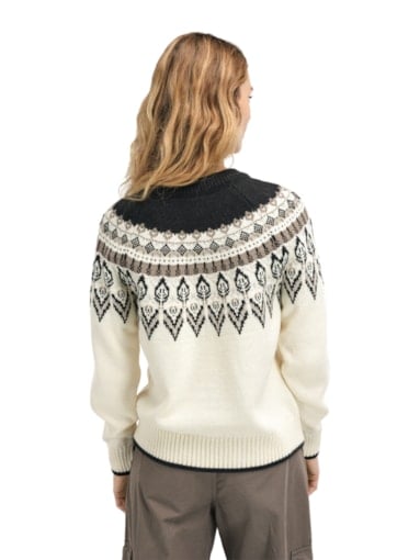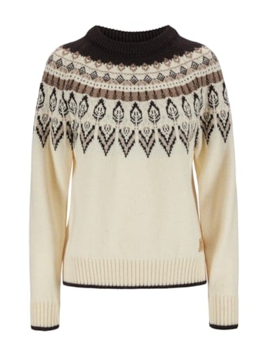En dekorativ, mønsterdrevet ullgenser med avslappet passform. Genseren er designet til å se ut som en rundstrikket genser, men har en klassisk konstruksjon med raglanermer. Sula er en tykk og komfortabel genser strikket i 100% ull med lang holdbarhet.
