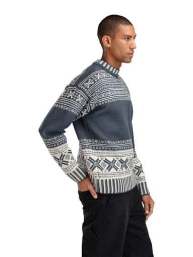 Torridal er designet med en komfortabel og avslappet passform. Med mønsteret plassert i skulderpartiet og genserens nedre kant, samt markante striper i de ribbestrikkede avslutningene, skapes et distinkt og visuelt tiltalende utseende. Torridal er strikket i norsk ull og er en nytolkning av den ikoniske lusekofta, inspirert av våre tradisjonelle Setesdal-plagg. Ved å utelate det tradisjonelle lusemønsteret får ullgenseren en ny identitet, og blir et allsidig plagg for hverdagsbruk.