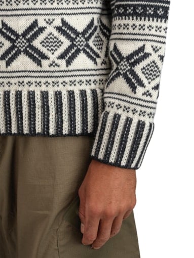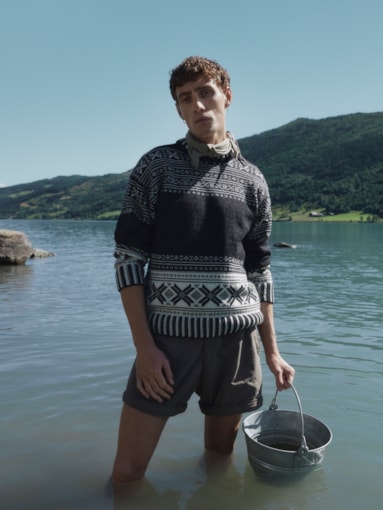 Torridal er designet med en komfortabel og avslappet passform. Med mønsteret plassert i skulderpartiet og genserens nedre kant, samt markante striper i de ribbestrikkede avslutningene, skapes et distinkt og visuelt tiltalende utseende. Torridal er strikket i norsk ull og er en nytolkning av den ikoniske lusekofta, inspirert av våre tradisjonelle Setesdal-plagg. Ved å utelate det tradisjonelle lusemønsteret får ullgenseren en ny identitet, og blir et allsidig plagg for hverdagsbruk.