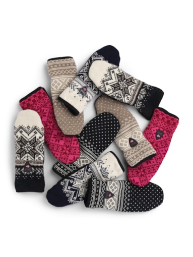 Vannavstøtende ullvotter med et klassisk mønster hentet fra vår Valløy-genser. Strikket med 100% norsk ull med lang holdbarhet, fôret med polyester.