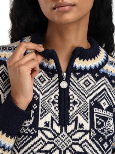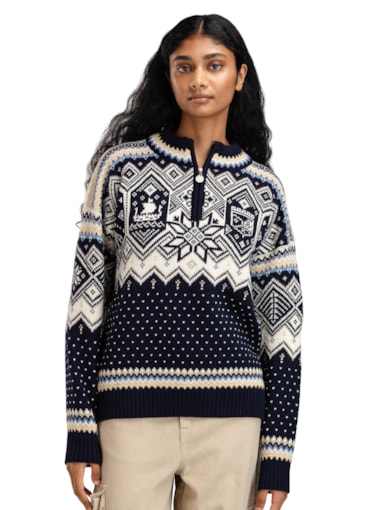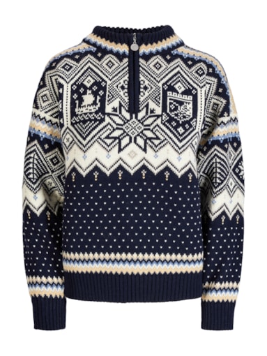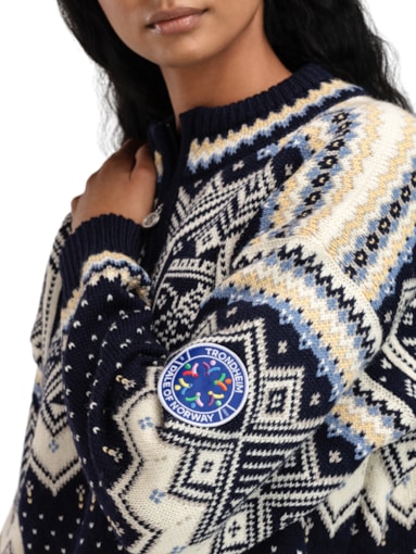 Dette er den offisielle genseren til ski-VM i Trondheim, 2025. Ullgenseren er varm og behagelig, med distinkt retro-preg og freshe farger som kombineres med et klassisk uttrykk. Mønsteret er inspirert av mesterskapets verdier: mangfold og inkludering, samtidig som det henter motiver fra historiske kulturminner i Trondheim. Genseren er strikket i 100% ull med lang holdbarhet og har en medium høy hals med glidelås.